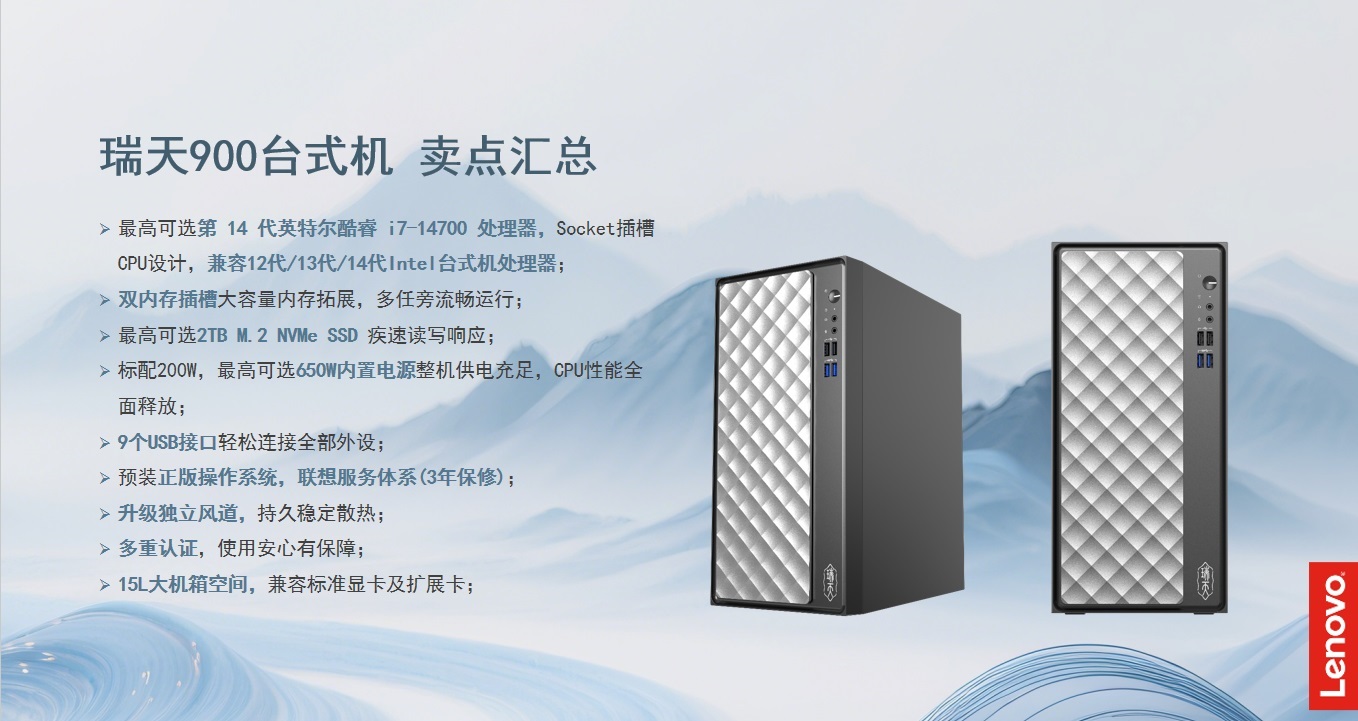 联想瑞天900台式电脑 I7-12700/16G DDR5内存/1T固态硬盘+4G独立显卡/带键鼠/ 18升大机箱/23.8寸显示器 三年送修 价格:7300元